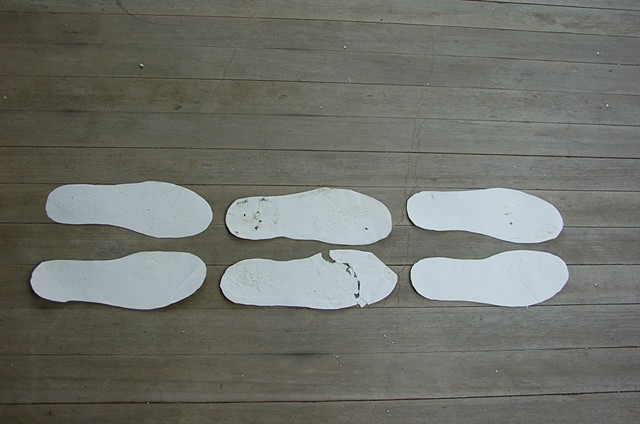 Concepts here include a person using a skateboard and a stick with a piece of chalk to draw, pieces of paper taped to the bottom of the foot in order to allow the land to "draw" for him, a person who "drew" a hammer with a hammer, a negative drawing of an electric shaver, and a drawing of a fork in orange peel.